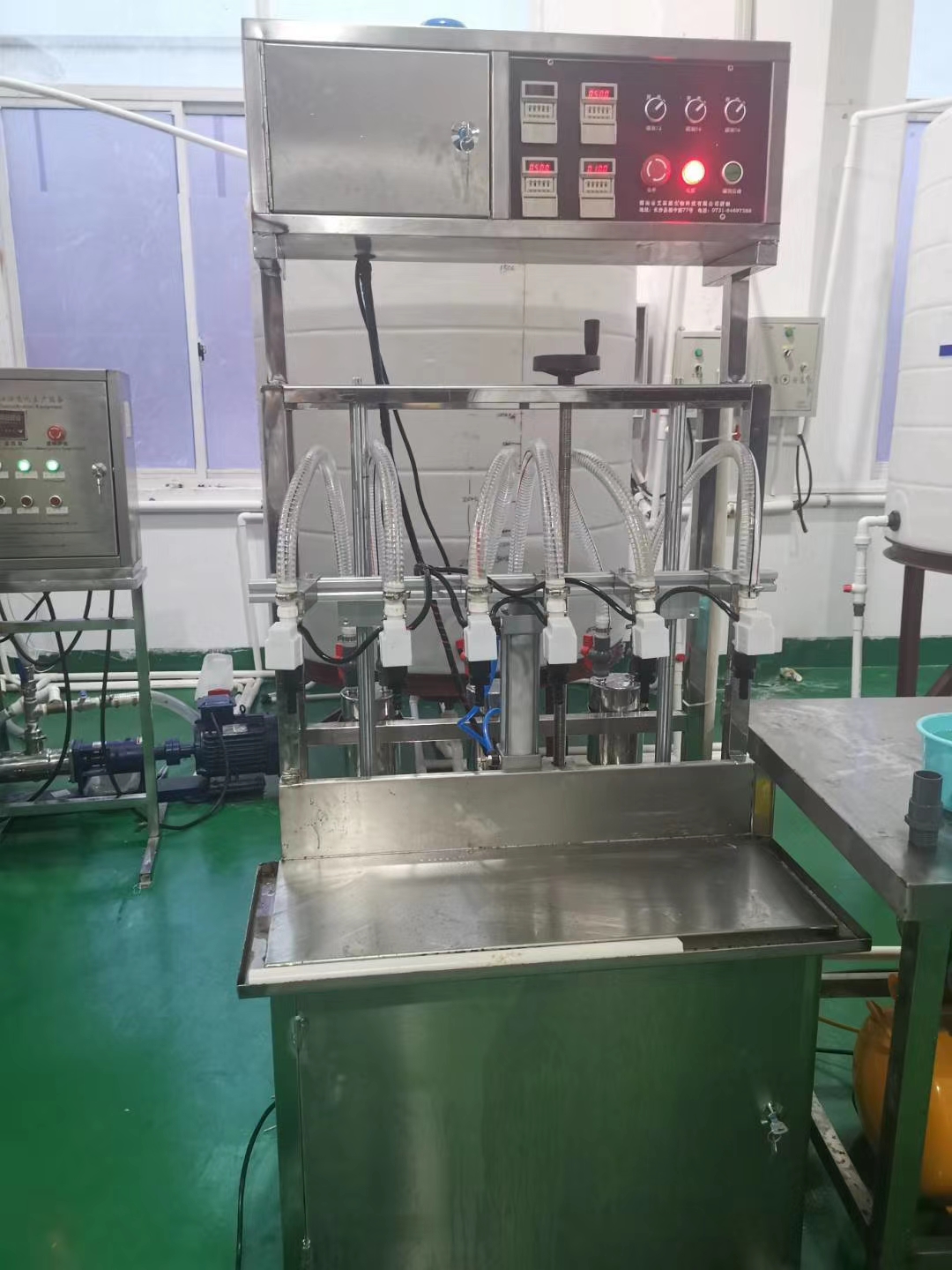 本液體灌裝機(jī)由湖南省富達(dá)日化有限公司研發(fā),灌裝量在300毫升-25公斤范圍內(nèi)均可自由調(diào)節(jié),克服了傳統(tǒng)灌裝機(jī)灌裝不同范圍內(nèi)產(chǎn)品需要多臺灌裝機(jī)的缺陷,設(shè)備接觸物料部分采用防腐材料制作,堅固耐用,操作簡便,適合于灌裝84消毒液、廁所清洗劑等具有腐蝕性的流動性液體和玻璃清洗劑、車用尿素、防凍液、精華液等瓶裝和桶裝產(chǎn)品。