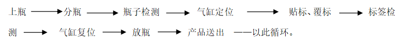 6, 上端分瓶機構放一個瓶子——依上循環連續貼標。